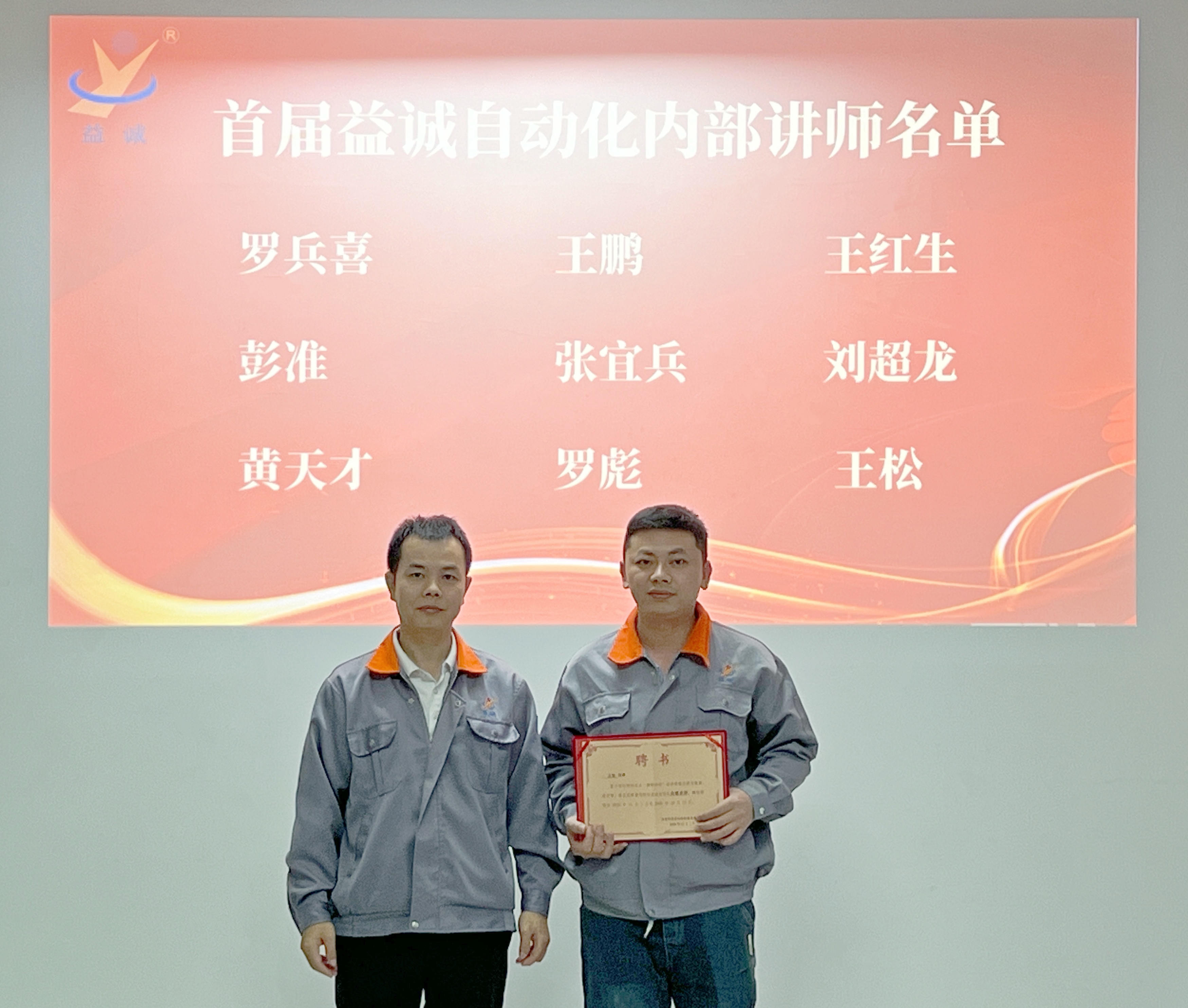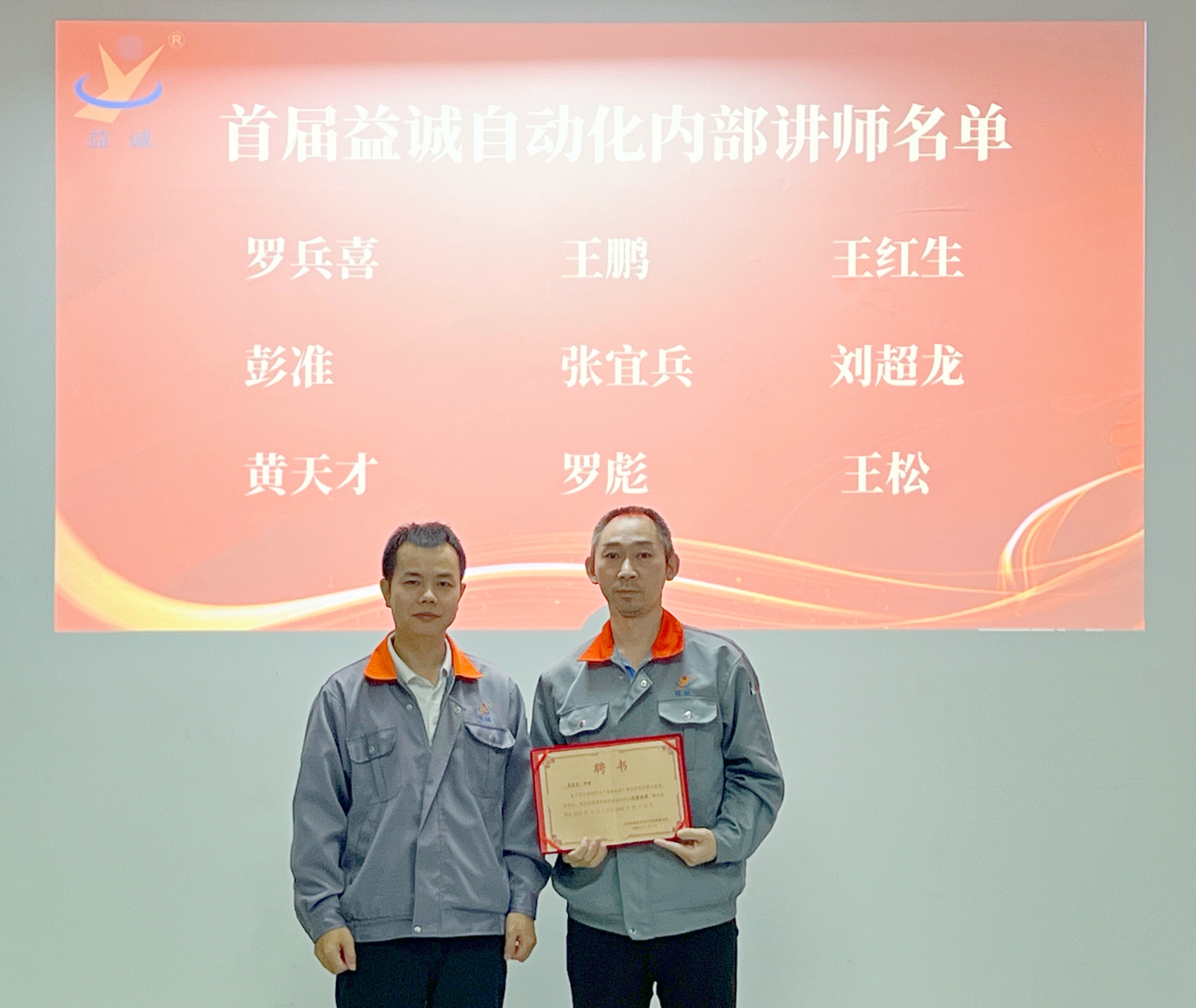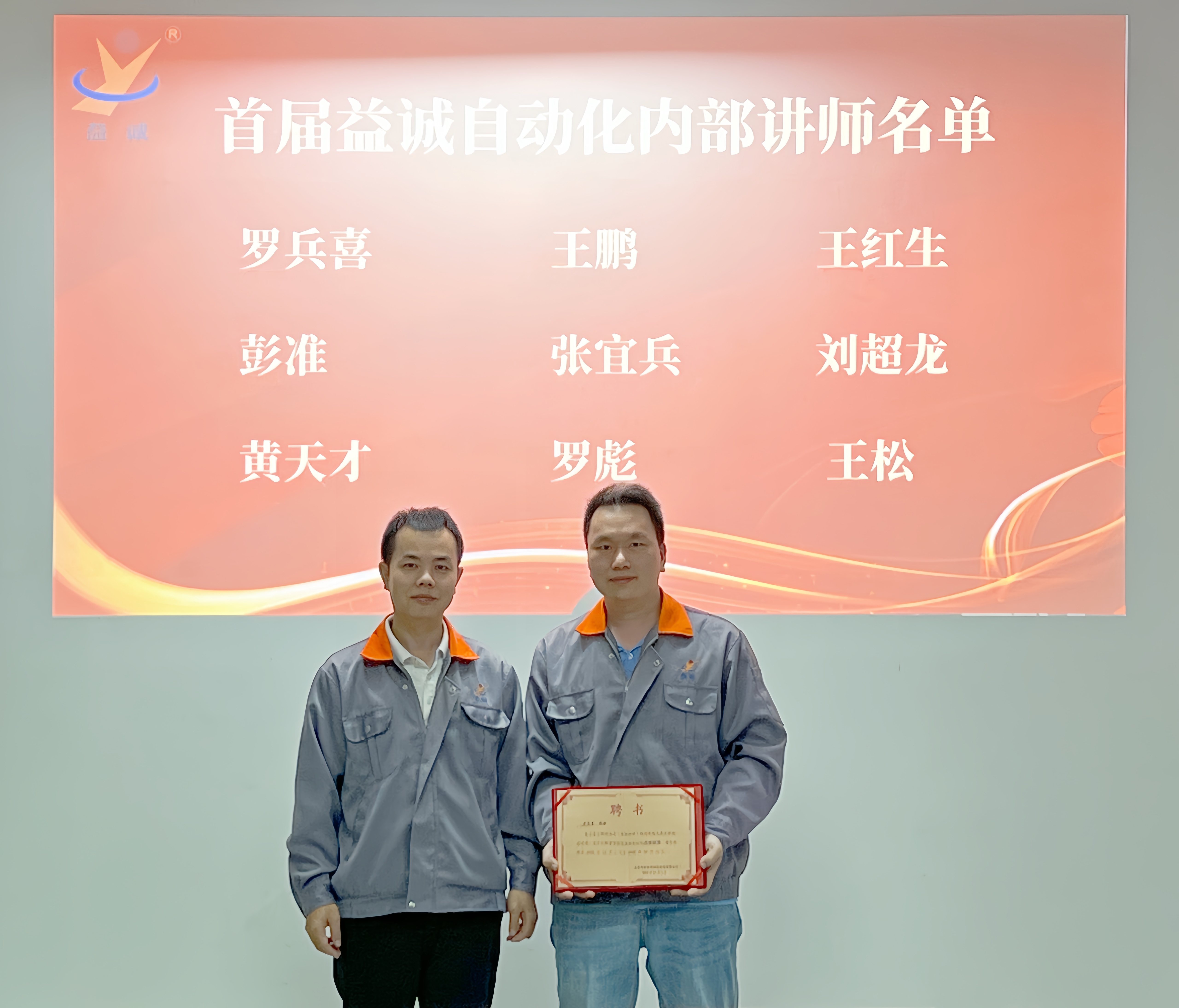 益誠(chéng)自動(dòng)化總經(jīng)理潘總親自為首批內(nèi)部講師頒發(fā)聘書,潘總勉勵(lì)大家:“這張聘書承載的不僅是榮譽(yù)與信任,更是責(zé)任與期待,希望大家成為公司智慧傳遞的橋梁,在教與學(xué)中激發(fā)思考,在傳與承中凝聚力量,為公司高質(zhì)量發(fā)展持續(xù)注入人才動(dòng)能。”