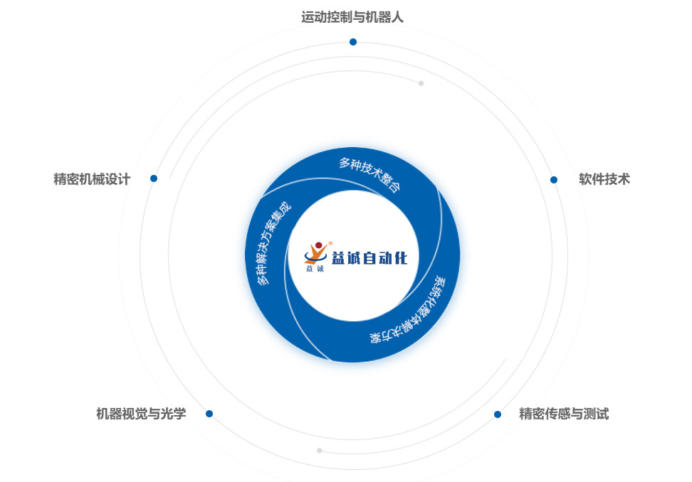 益誠自動化成立于2007年,已通過ISO9001:2015質(zhì)量管理體系認(rèn)證,是一家高新技術(shù)企業(yè),東莞市工程技術(shù)研究中心,設(shè)有一個博士工作站??偣疚挥趶V東省東莞市,在沈陽、蘇州、印度尼西亞設(shè)有分公司,在香港特別行政區(qū)和德國設(shè)有辦事處。并與2021年在浙江、韶關(guān)自建智能制造工業(yè)科技園。益誠自成立以來專業(yè)從事非標(biāo)自動化生產(chǎn)設(shè)備、視覺定位與檢測、工業(yè)多軸機(jī)器人的研發(fā)、制造與服務(wù),以及為生產(chǎn)企業(yè)提供智能制造整體解決方案。益誠擁有一支由100余名專業(yè)工程開發(fā)人員組成的研發(fā)團(tuán)隊。在汽車配件、電子電器開關(guān)插座、精密微型馬達(dá)、散熱風(fēng)扇、機(jī)械手等生產(chǎn)領(lǐng)域,為各生產(chǎn)企業(yè)提供多元化的自動化解決方案。為使益誠的研發(fā)能力能得到持續(xù)提升,為市場提供更優(yōu)質(zhì)的服務(wù),益誠與國內(nèi)多家高等院校建立了”產(chǎn)、學(xué)、研“合作關(guān)系,并與德國著名的自動化設(shè)備制造商”SUSO Automation“結(jié)成戰(zhàn)略合作伙伴。